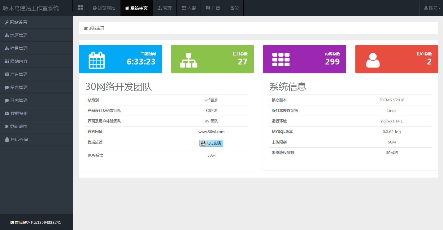 (PS:啄木鸟自主研发建站系统管理后台展示)